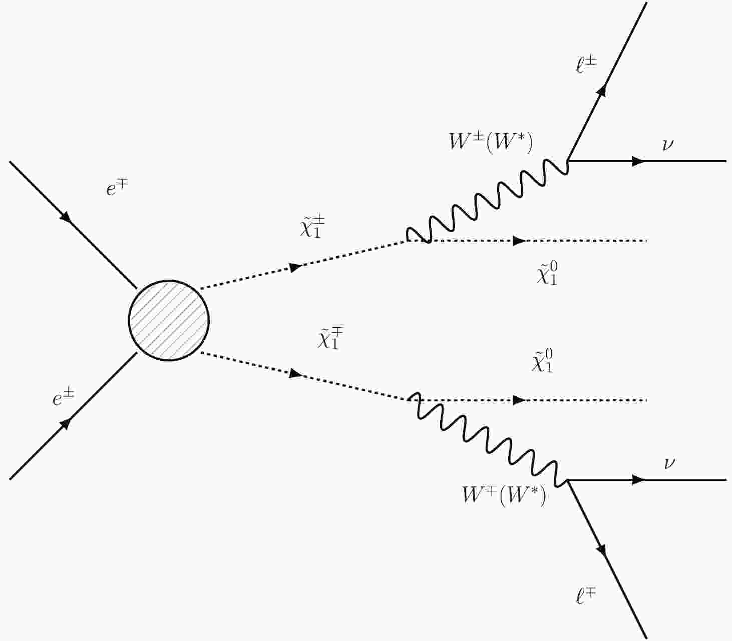 $ \tilde{\chi}^{\pm}_1 $ masses below 92.4 (91.9) GeV independent of the$ \tilde{\chi}^0_1 $ mass for the Higgsino (Bino) LSP case [14-19]. At ATLAS (CMS), chargino pair production that assumed a Bino-like LSP was excluded for$ \tilde{\chi}^{\pm}_1 $ masses up to 420 (200) GeV assuming a W-boson-mediated chargino decay [20, 21]. For the scenario assuming a Higgsino-like LSP,$ \tilde{\chi}^{\pm}_1 $ masses below 193 GeV were excluded for mass splittings down to 4.6 GeV, and mass splittings from 1.2 GeV to 30 GeV were excluded at the LEP bounds on the$ \tilde{\chi}^{\pm}_1 $ mass by ATLAS [22]. Light higgsinos with mass splittings below 1 GeV, which are preferred by naturalness conditions from low-energy fine-tuning measures, are still not excluded by the LHC and will also be highly challenging for the HL-LHC.For the Bino-like (Higgsino-like) LSP case, the increased center-of-mass energy of the CEPC will extend the search sensitivity for the