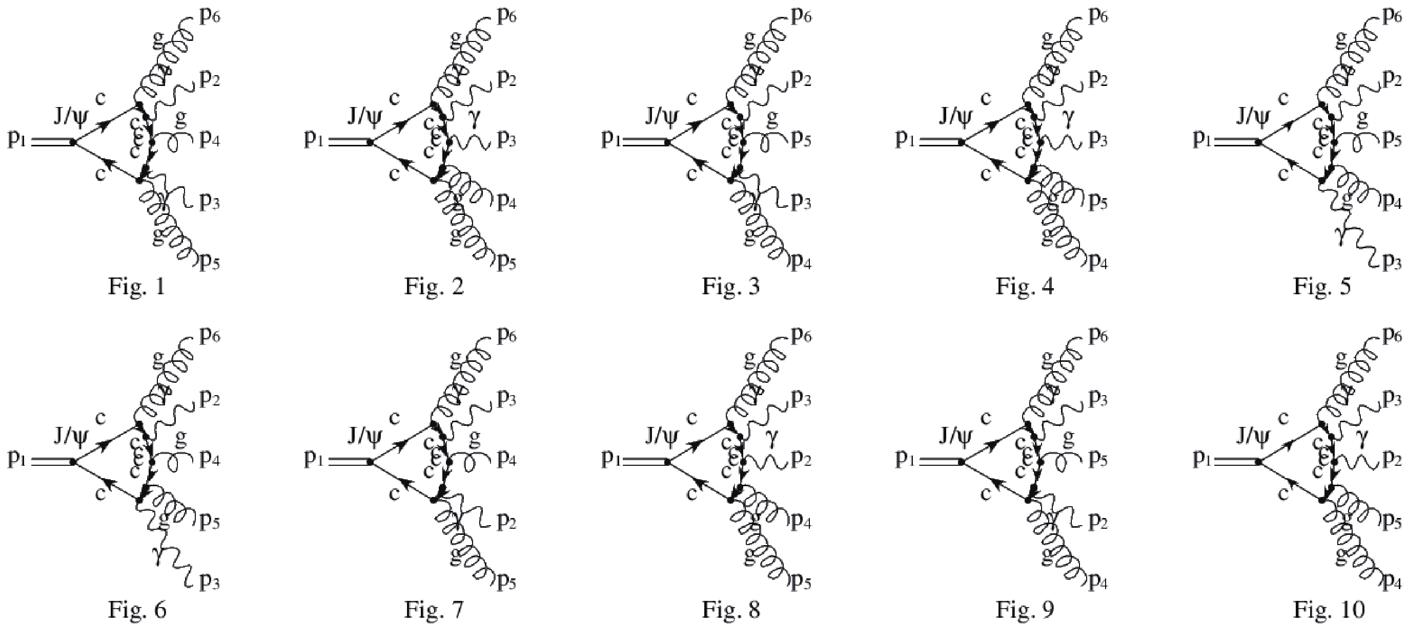$ {\rm d}\Pi_2 $ is the two-body phase space. Note the dominating contribution of$ J/\psi \to \gamma \gamma + q \bar{q} $ from Figs. 1–6 in Fig. 2. Hence, the higher order QCD correction effects in Eq. (7) could be minimized.According to Eqs. (4) and (7), the branching ratios for the rare decay of
