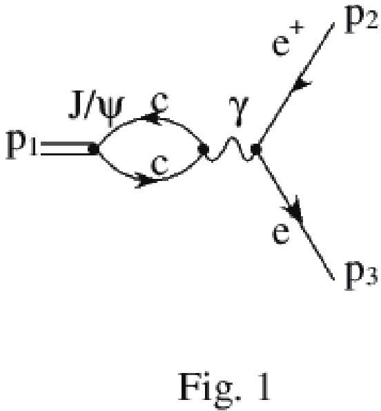 $ J/\psi \to e^+e^- $ contains one Feynman diagram shown in Fig. 4, and the decay width is expressed as follows:$ \begin{aligned}[b] \Gamma(J/\psi \to e^+e^-) =&\frac{1}{2M_{J/\psi}}\int {\rm d}\Pi_2\frac{1}{3}\\&\times \sum\limits_{{\rm{polarization}}}|{\cal{M}}(J/\psi \to e^+e^-)|^2, \end{aligned} $