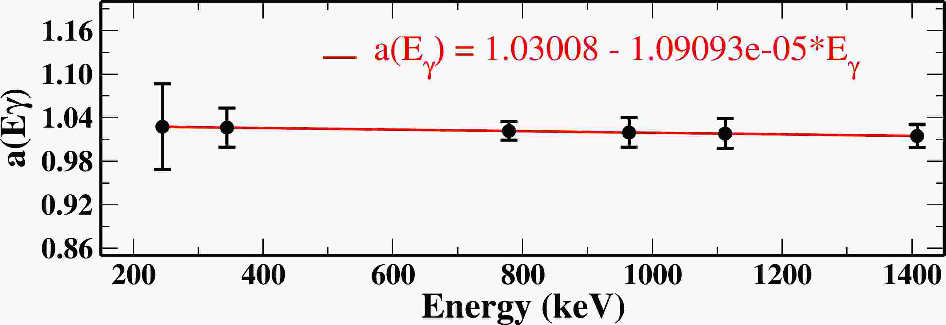 $ _\parallel $ and N$ _\perp $ represent the counts for the actual Compton-scattered γ rays in the directions parallel and perpendicular to the reaction plane, respectively. The correction factor a(E$ _\gamma $ ), which was introduced for handling the asymmetry in the response of the segments of the clover detector [20], was estimated using an unpolarized$ ^{152} $ Eu source and is evaluated using the relation$ a(E_{\gamma}) = \frac{N_\parallel}{N_\perp}. $