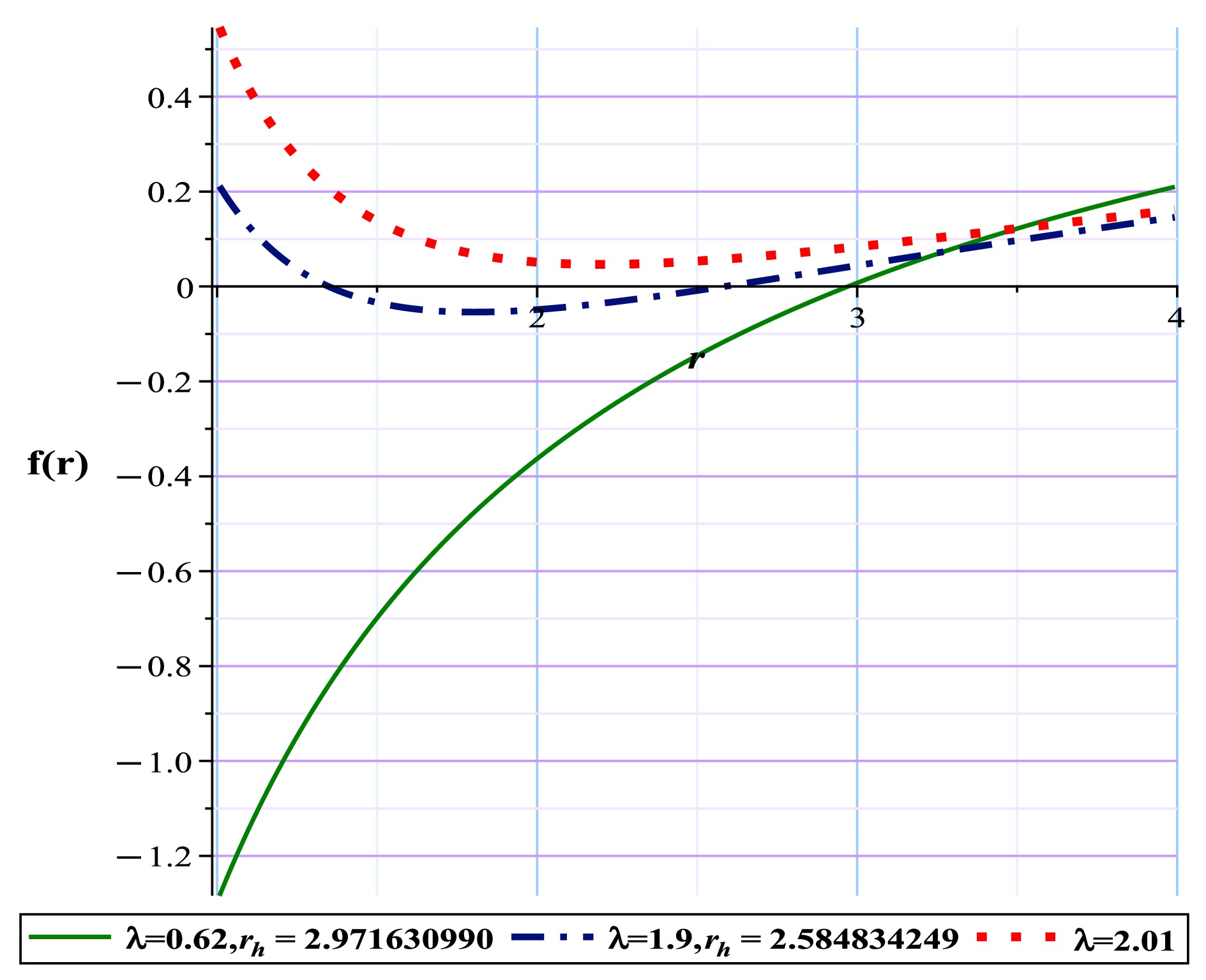 Solving the metric function (1) based on the specific parameters leads to only an interval in which the radius of event horizon will remain real according to the desired parameters,